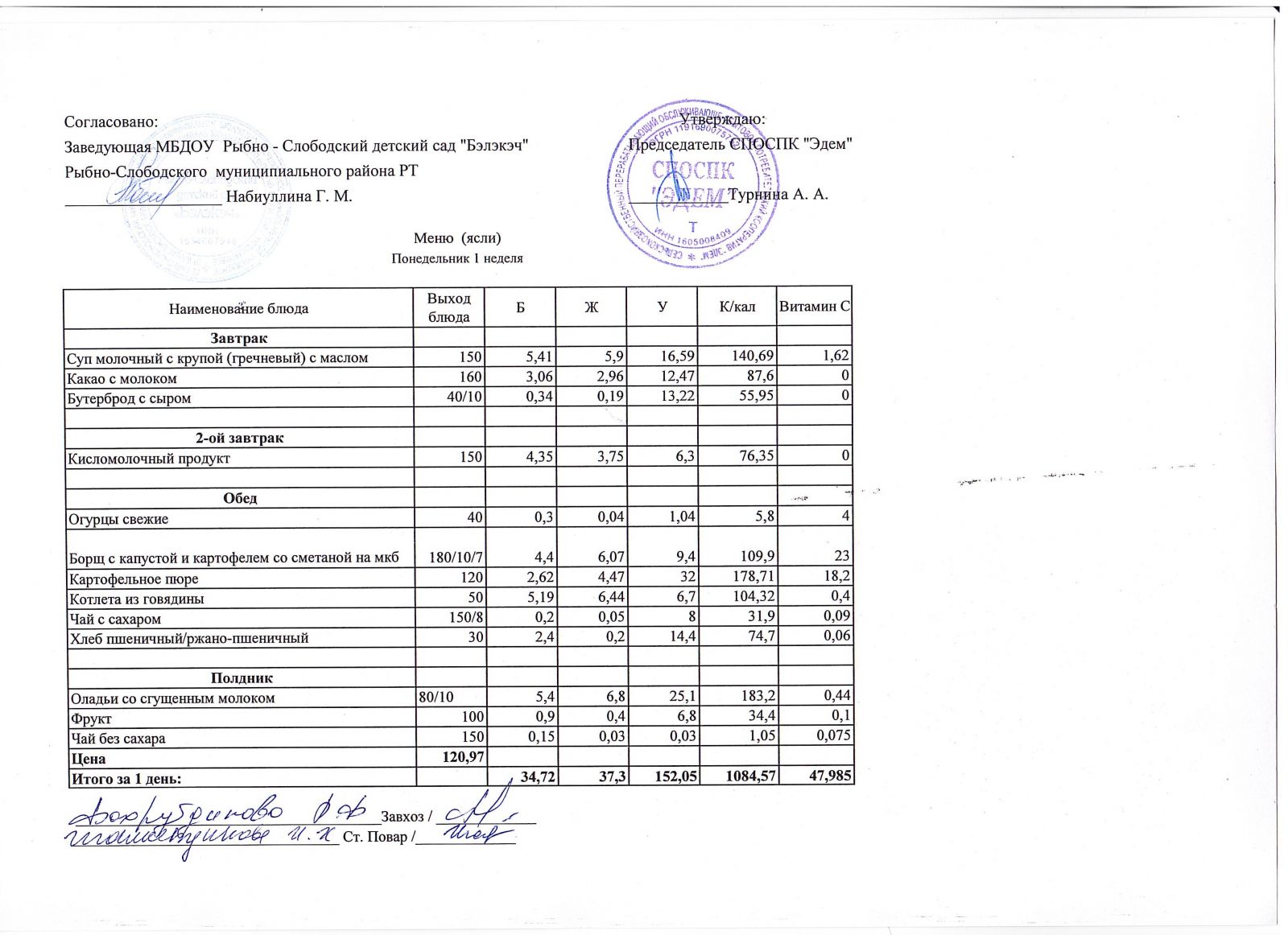 Меню(ясли) понедельник первая неделя 04.03.2024