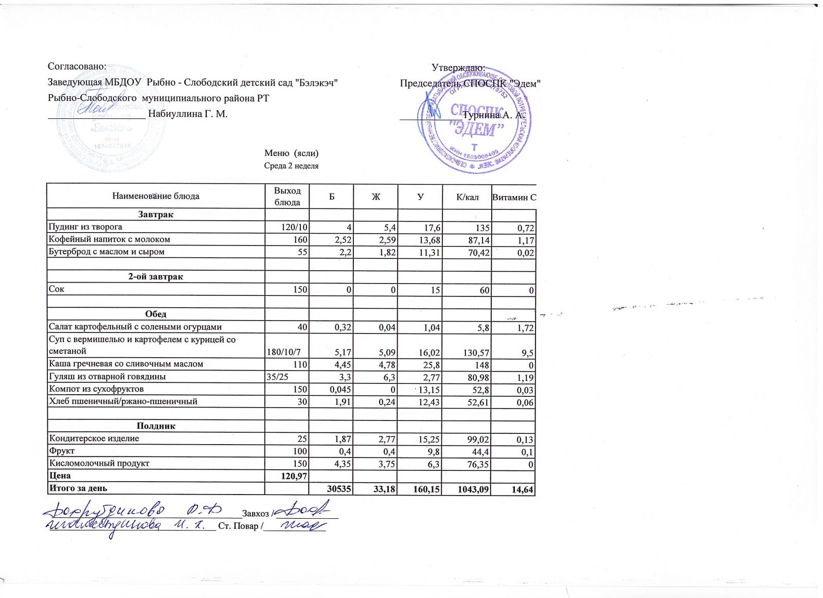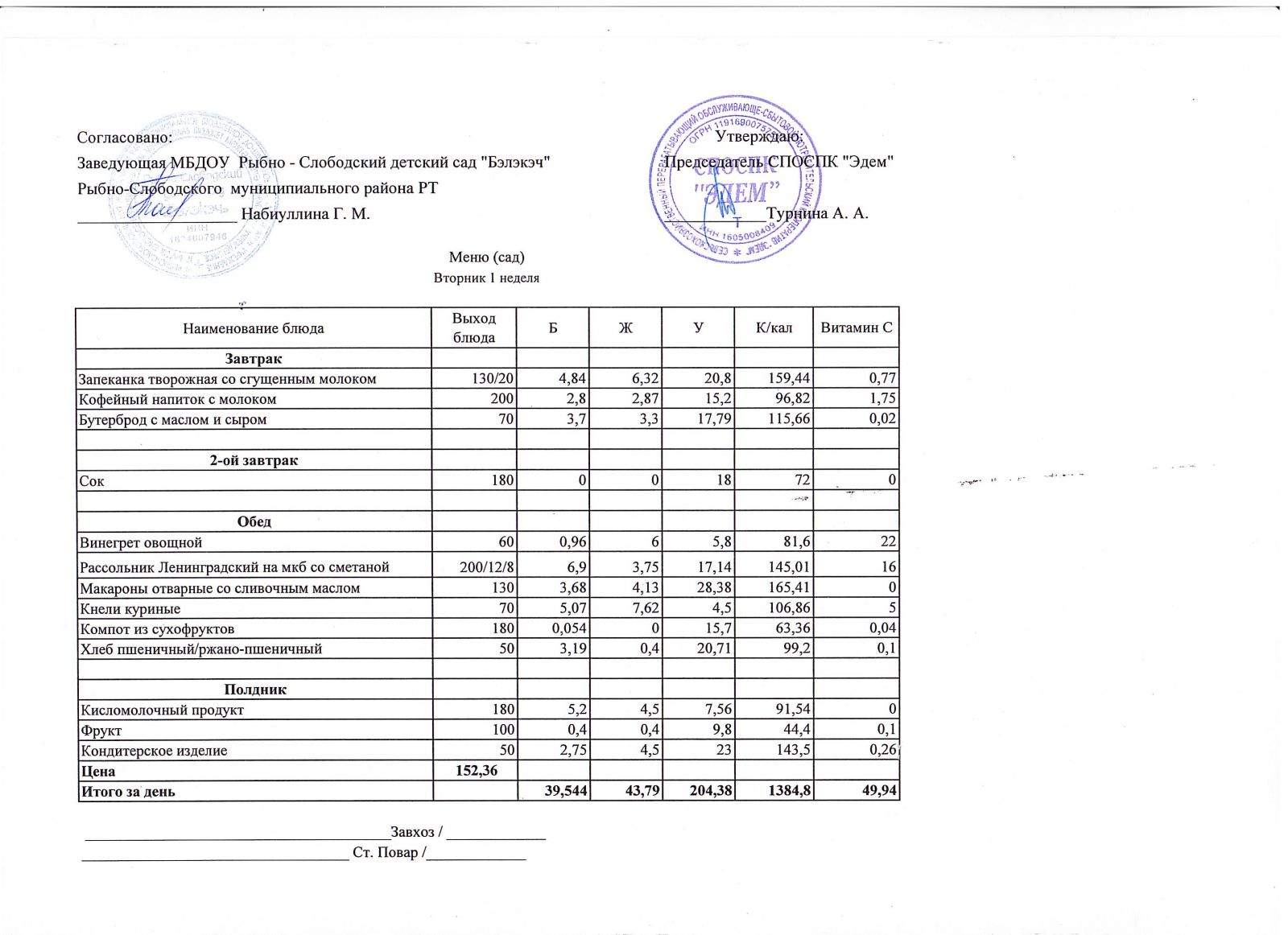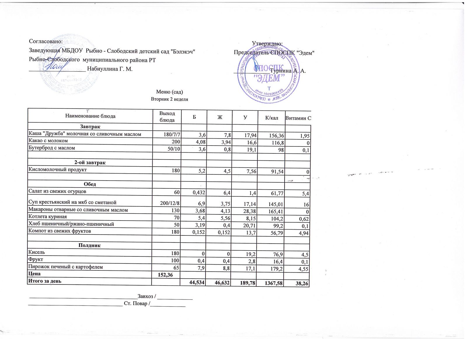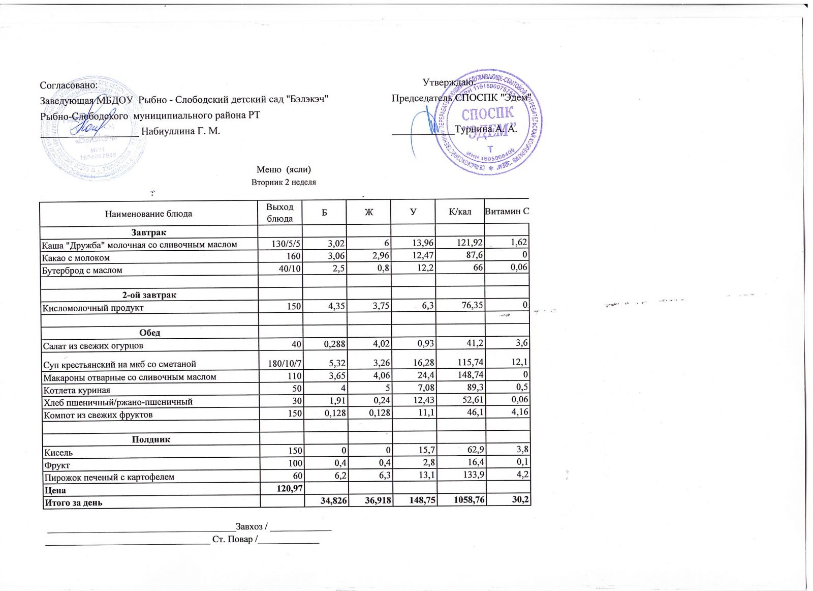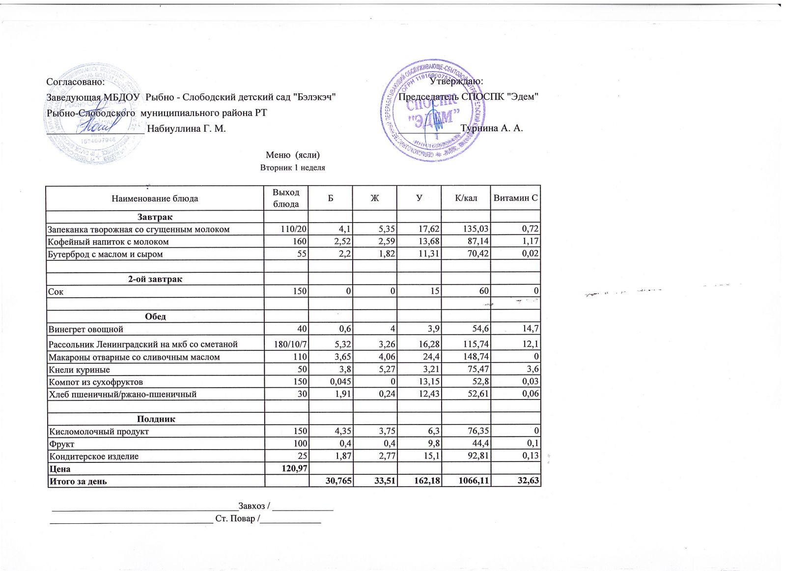Меню(ясли) вторник вторая неделя 12.03.2024