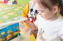 С целью закрепления и обобщения знаний о воде и ее обитателях, расширения и систематизации знаний детей о представителях морского дна, об их особенностях, о приспособленности к жизни в водной среде была объявлена тематическая неделя "Морские обитатели". Дети вместе с воспитателями создали макет.
