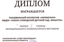 Танцевальный коллектив "Карамельки" МБДОУ "Рыбно-Слободский детский сад "Мишутка" лауреат 2 степени муниципального этнокультурного фестиваля. Поздравляем ребят!