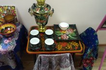 Воспитателями Жариновой Т.Н., Калиевой К.З., совместно с музыкальным руководителем Кругловой С.П. и инструктором по физ.воспитанию Захаровой И.А. проведен фольклорный досуг "Русский сувенир" для детей подготовительной группы. Активными участниками праздника были и приглашенные родители. Детей познакомили с историей возникновения русских сувениров. В коридоре была организована фотозона "У самовара".