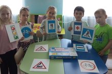 Воспитатель рассказала и объяснила юным инспекторам дорожного движения, что все знаки делятся на три группы: предупреждающие, информационные и предписывающие, в ходе чего, дети старательно разложили знаки по группам. Ребята отгадывали загадки, играли в игру «Веселый светофорик».