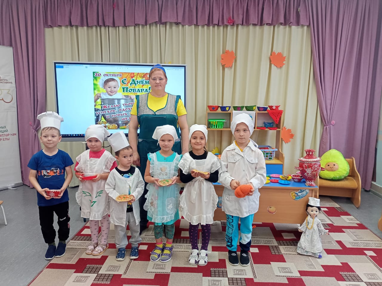 В старшей группе детского сада «Салават купере» провели «День повара». Побеседовали о профессии повара. Играли в сюжетно – ролевую игру «Поварята».