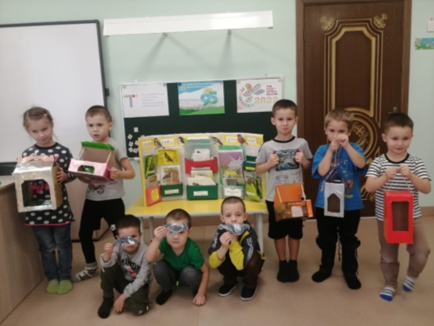 Балаларда кошларга карата мәрхәмәтлелек хисе, кышкы салкын көннәрдә аларга ярдәм итү теләге тәрбияләү максатында, бу атна “Бездә кышлаучы кошлар” проектын тормышка ашыру кысаларында узды. Кошларга азык табуы кыен булуын истә тотып, кошларны туйдыру өчен, балалар әти – әниләр ярдәмендә җимлекләр ясадылар.