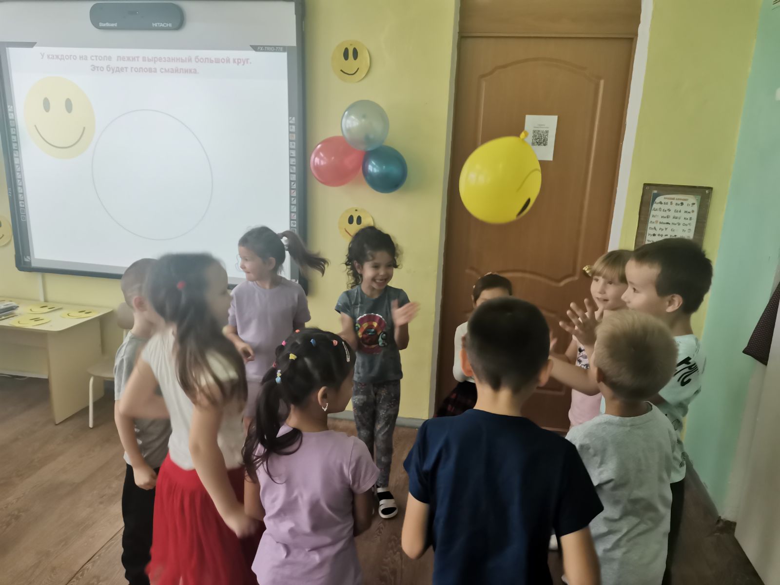 Смайлик мәгълүматны ятларга булыша. Смайлик кешене бәхетле итә ала. Бәйрәм ахырында балалар «Ромашка» төркеме сабыйларына Смайликның эмоцияләрен рәсемнәр белэн бүләк иттеләр.