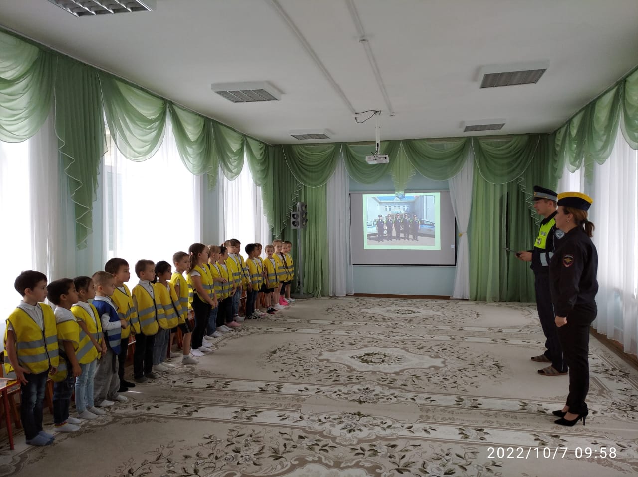 07.10.2022 елны "Каенкай" балалар бакчасында Питрәч һәм Балык Бистәсе районнарында бүлек начальнигы И. М. Җиһаншина, Балык Бистәсе районы буенча Россия Эчке эшләр министрлыгының ЮХИДИ бүлеге начальнигы, полиция капитаны Шиһапов И.З. һәм Балык Бистәсе муниципаль районында ЮИД буенча матбугат үзәге җитәкчесе Хәмәтвалиева А.С. катнашында әзерлек төркеменең ЮИД отрядына багышлау уздырылды