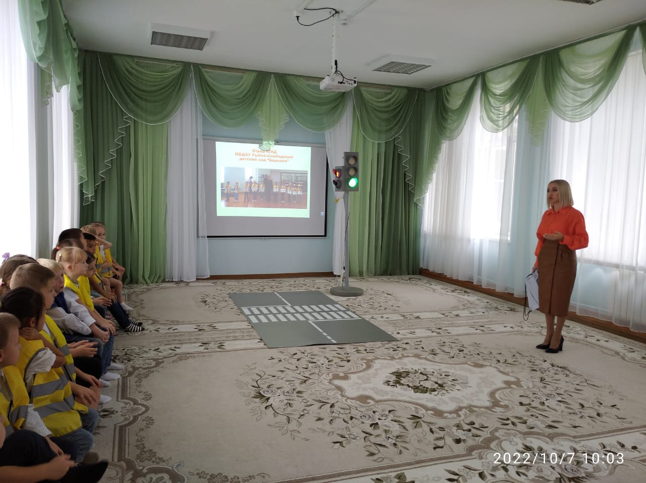 Опубликовано: 11.10.202207.10.2022 г. в МБ ДОУ "Берёзка" прошло посвящение в отряд ЮИД воспитанников подготовительной группы с участием начальника отделения в Пестричинском и Рыбно-Слободском районах ОП ТУ в г.Казани ГБУ БДД Зиганшиной И. М., начальника ОГИБДД ОМВД России по Рыбно - Слободскому району капитана полиции Шигапова И. З. и руководителя пресс-центра ЮИД по Рыбно - Слободскому муниципальному району Хаматвалеевой А. С.