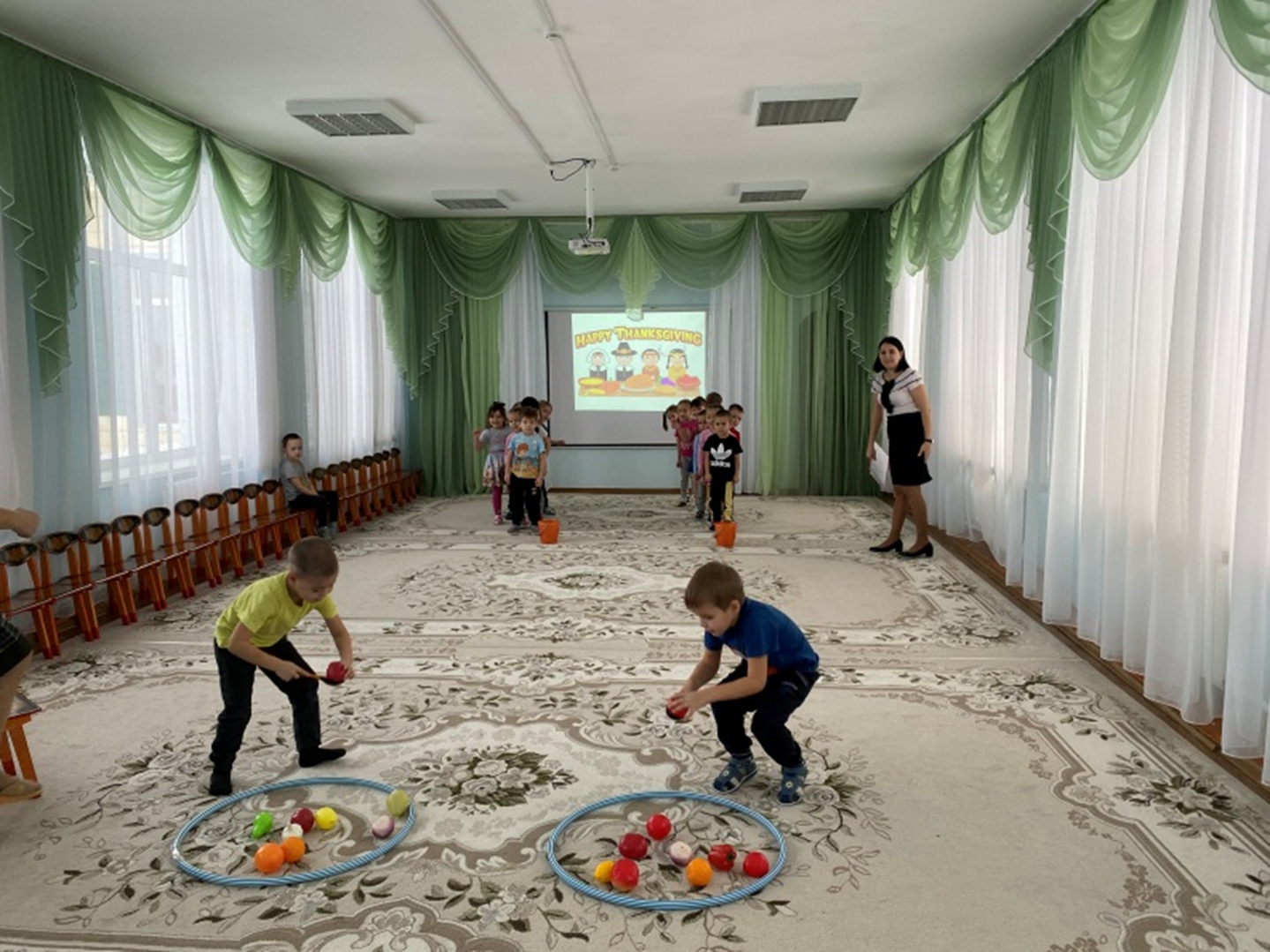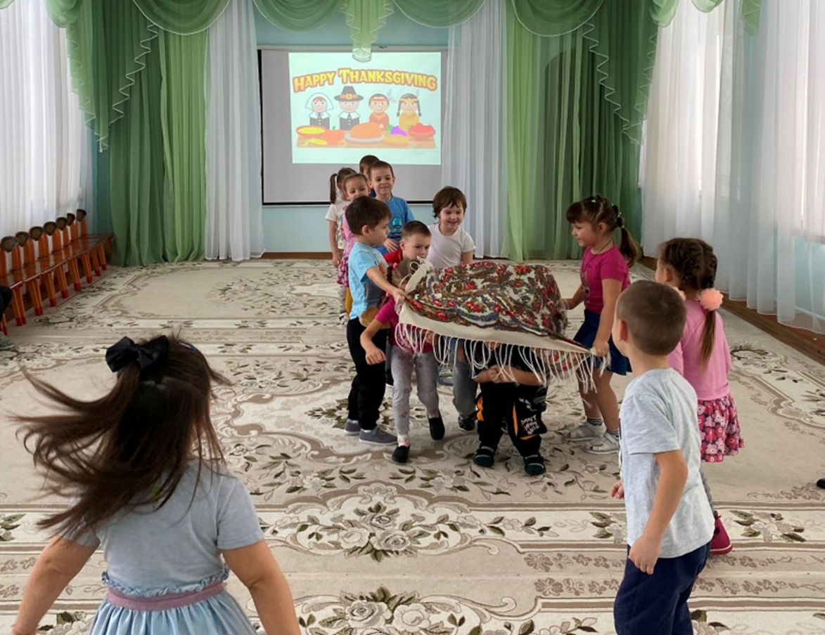 В нашем детском саду, с воспитанниками средней группы прошло развлечение, посвященное Дню благодарения, где дети познакомились с историей его празднования, культурой и традициями, поиграли в различные игры.