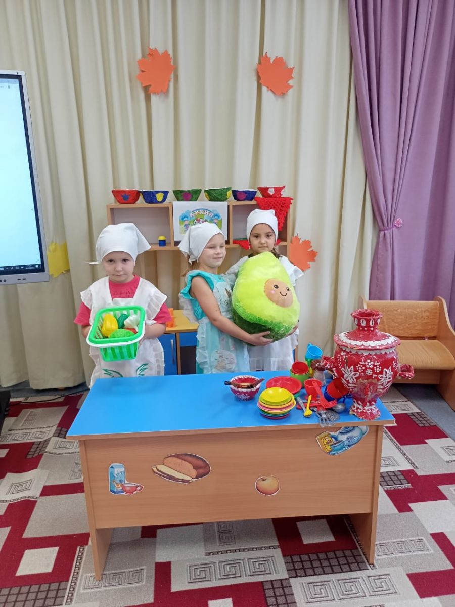 Опубликовано: 23.10.2023«Салават купере» балалар бакчасынын зурлар төркемендә “Аш пешерүчеләр көне” үткәрдек. Аш пешерүче һөнәре турында әңгәмә үткәрдек.Балалар сюжетлы – рольле уен уйнадылар, аш пешеүче апаларын котлап шигырьләр сөйләделәр, җырладылар һәм биеделәр.