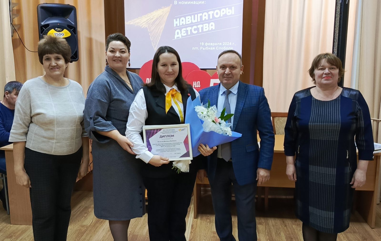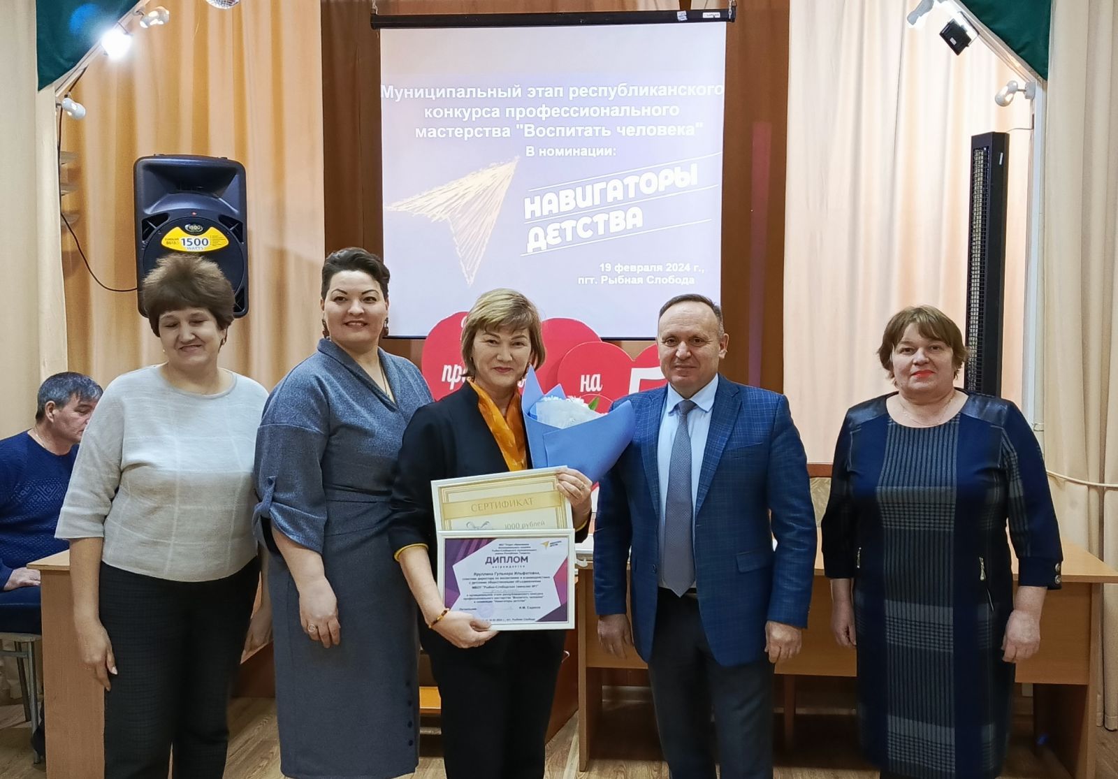 Опубликовано: 20.02.2024 19 февраля на базе МБУ ДО «Центр детского творчества" Рыбно-Слободского муниципального района состоялась торжественная церемония награждения по итогам муниципального этапа Республиканского конкурса профессионального мастерства работников сферы воспитания и дополнительного образования "Воспитать человека" в номинации "Навигаторы детства" среди советников директора по воспитанию и взаимодействию с детскими общественными объединениями.