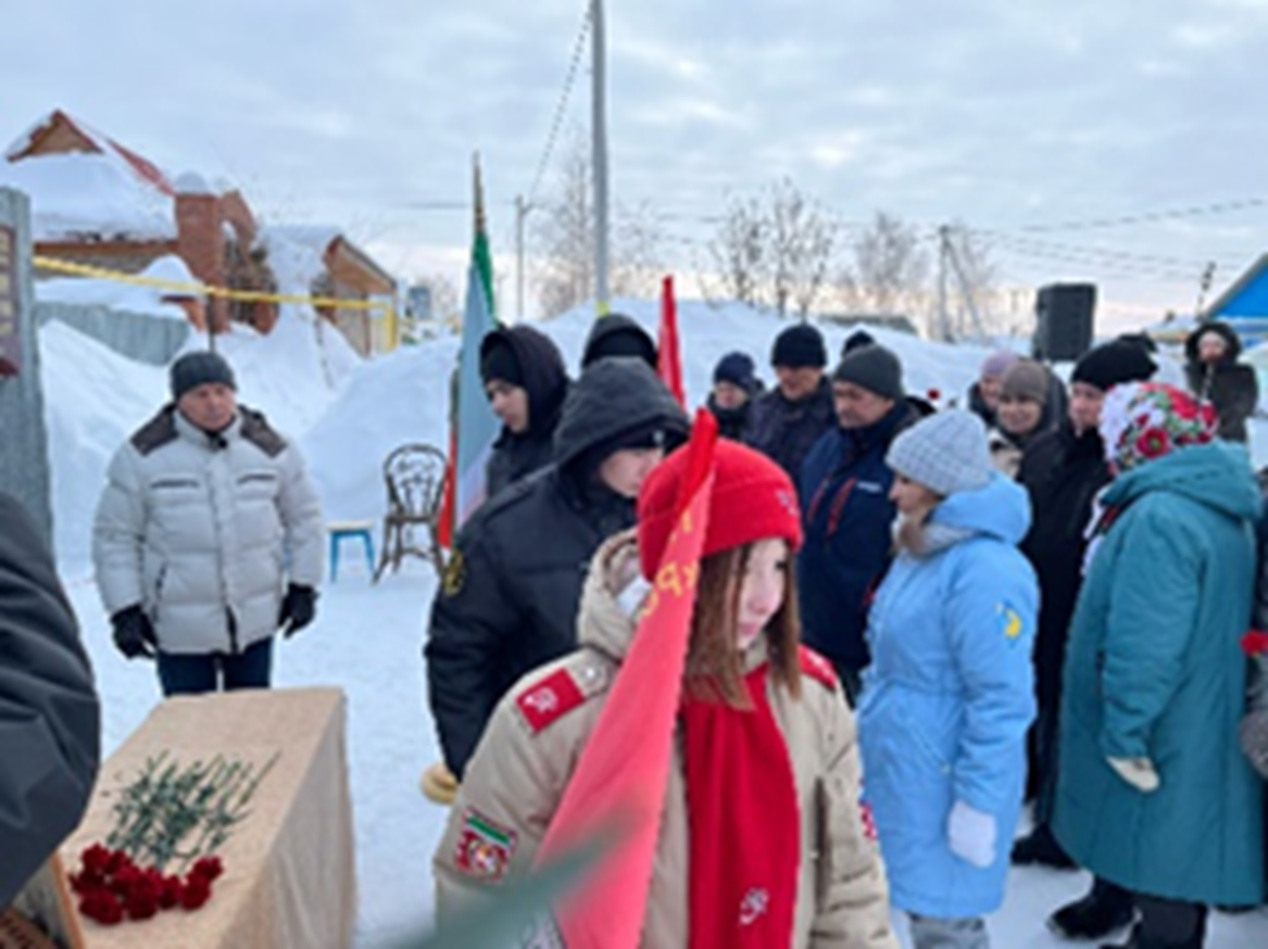 В церемонии открытия приняли участие близкие и родные бойца, руководство района, учителя и школьники, юнармейцы.