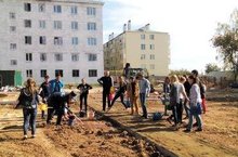 БЛАГОУСТРОЙСТВО ТЕРРИТОРИИ СТРОЯЩЕГОСЯ ДЕТСКОГО САДА УЧАЩИМИСЯ 10 КЛАССОВ.
