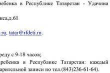 электронный адрес: rt.deti@tatar.ru, tatar@rfdeti.ru. сайт: rtdety.tatar.ru, rfdeti.ru Приемные дни и часы: