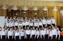 Мальчики, чтобы поздравить девочек с праздником пришли при параде.