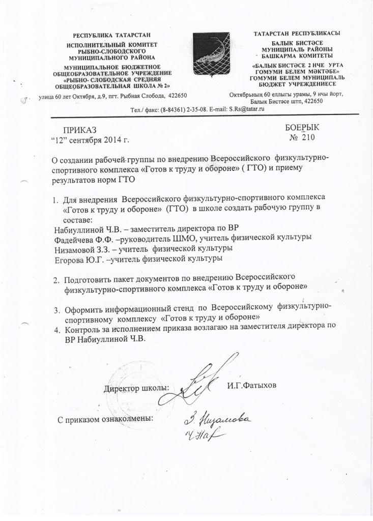 Указ Президента РФ от 24 марта 2014 г. № 172 “О Всероссийском физкультурно-спортивном комплексе "Готов к труду и обороне" (ГТО)”