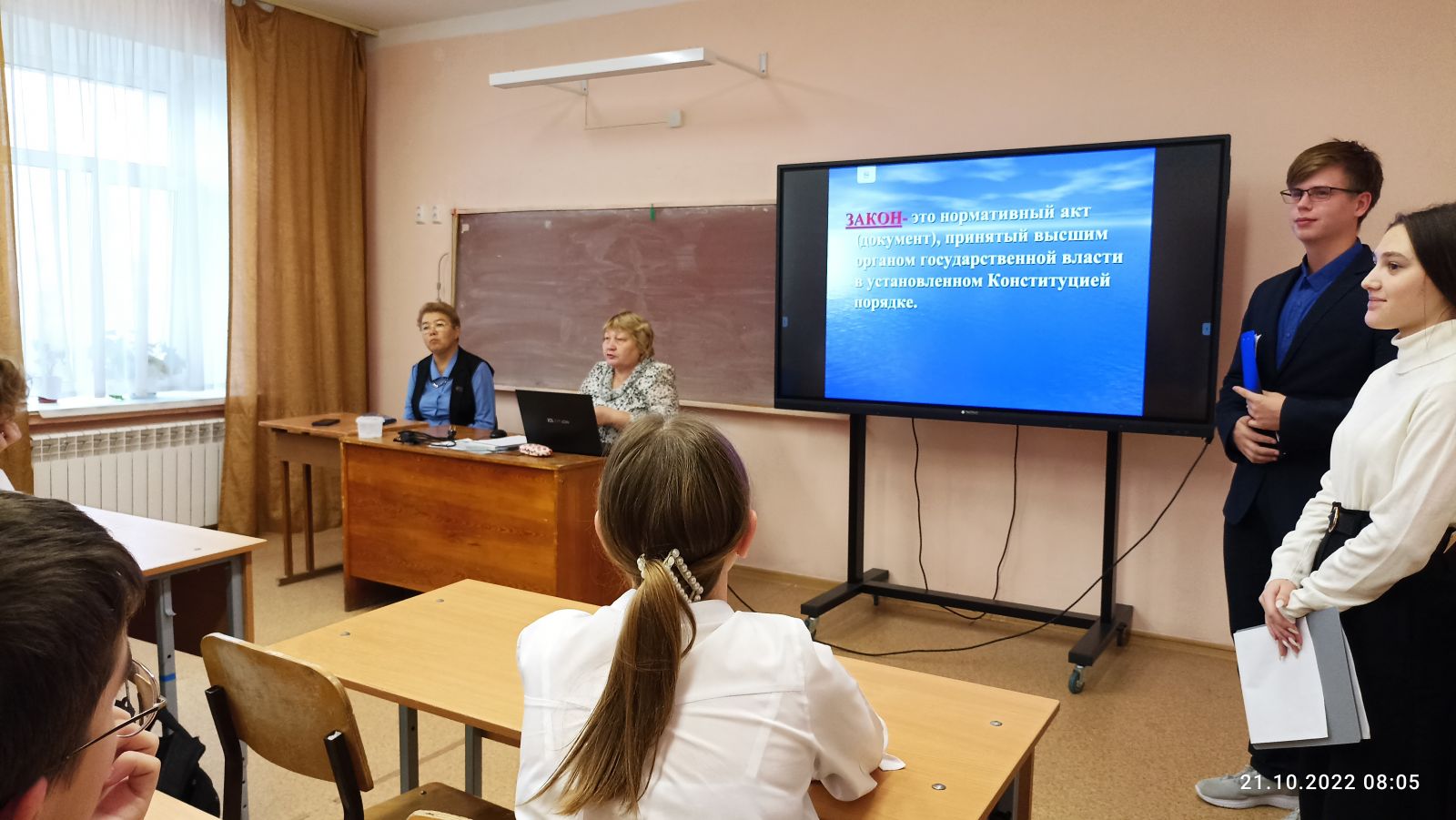 21 октябрьдә 7б, 11а сыйныф укучылары белән «Без үз гамәлләребез өчен җаваплы» дигән темага класс сәгате узды. Дәрестә шәһәр җирлеге депутаты Талалаева Мөнирә Роберт кызы катнашты. Чара яшүсмерләр хокук бозуларын профилактикалау һәм булдырмау, теге яки бу гамәлләр өчен яшүсмернең җаваплылыгы турында белемнәрне исәпкә алып, үз-үзеңне тоту моделен аңлы сайлау максатыннан үткәрелде.