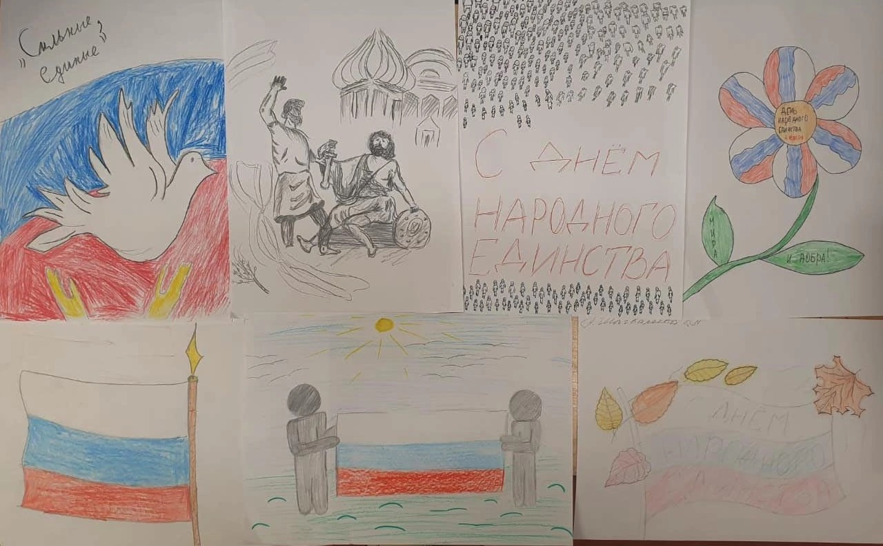 Опубликовано: 02.11.2022Конкурс рисунков ко Дню народного единства - замечательная возможность вспомнить важнейшие исторические события страны и разделить радость дружбы и единства нашего народа. В преддверии этого дня в нашей школе была организована выставка рисунков «В единстве наша сила»