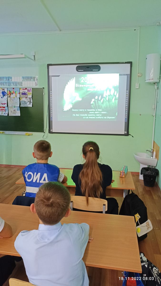 Опубликовано: 21.11.2022Всемирный день памяти жертв дорожно-транспортных происшествий — отмечается по предложению Генеральной Ассамблеи ООН ежегодно, начиная с 2005-го года, в третье воскресенье ноября. Юнармейцы МБОУ " Рыбно- Слободская СОШ 2" приняли участие в классном часе для обучающихся 4 А класса. Призвали всех соблюдать правила дорожного движения,быть внимательными на дорогах.