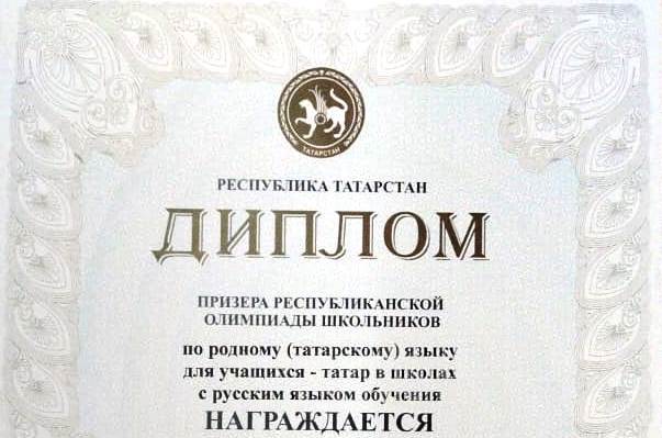 Мәктәбебезнең 8нче сыйныф укучысы Токранова А. татар теленнән республика олимпиадасы призеры исеменә лаек булды. Альбинаны Токранова Э.И. әзерләде. Җиңүчеләребезне котлыйбыз, алга таба да яңа үрләр телибез!