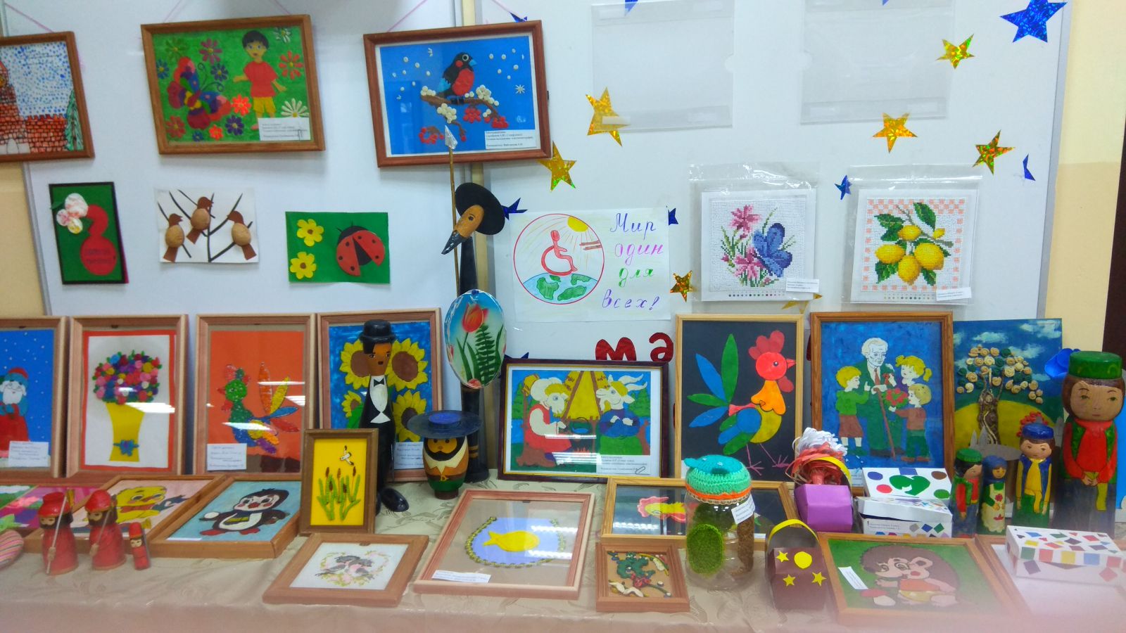 В рамках "Международного дня инвалидов и декады инвалидов" организована выставка творческих работ детей коррекционных классов совместно с учителями.
