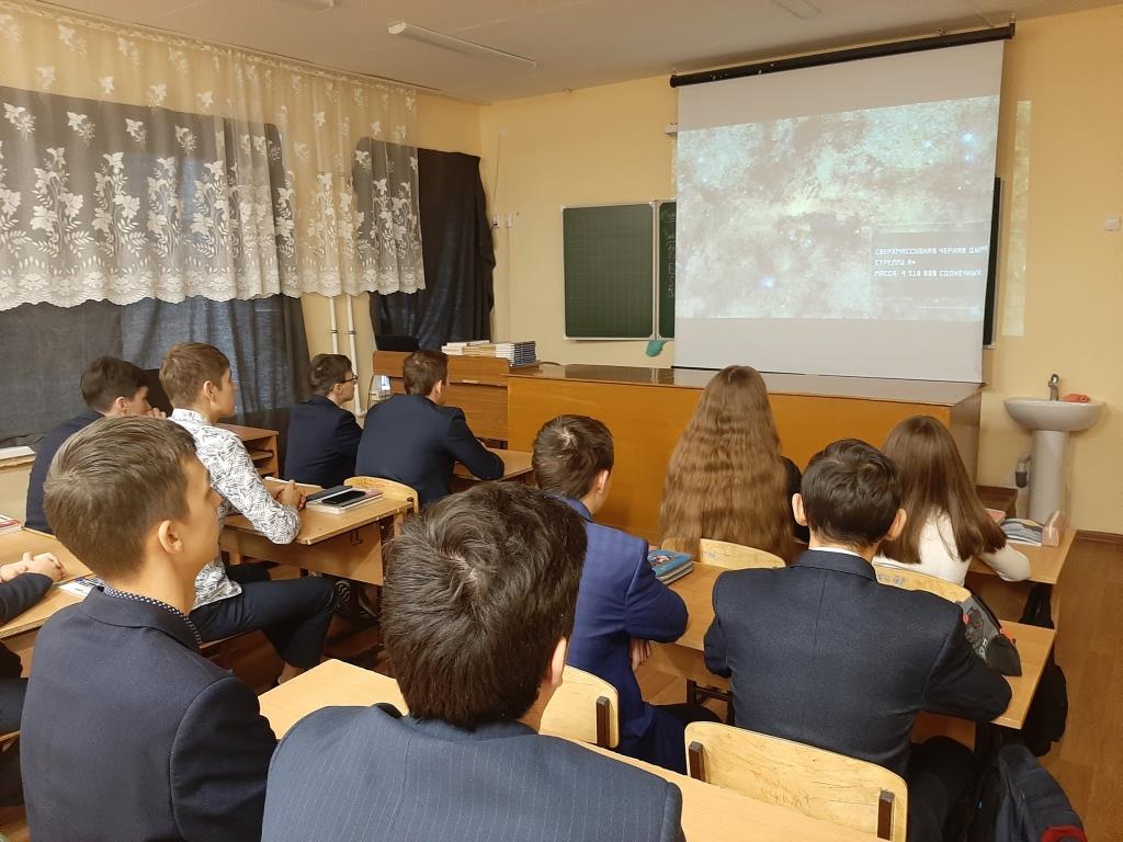 2021 нче елның 30 нчы октябрендә 10 нчы сыйныф укучылары «Галактика могҗизалары»дип аталган Бөтенроссия астрономия дәресендә катнаштылар. Дәреснең максаты-астрономик белемнәргә кызыксыну формалаштыру; укучыларның космик объектлар турындагы күзаллауларын киңәйтү; галәм серләрен өйрәнүдә фәнни тикшеренүләрнең мөмкинлекләрен аңлау. Дәресне физика укытучысы Токранова Г. В. үткәрде