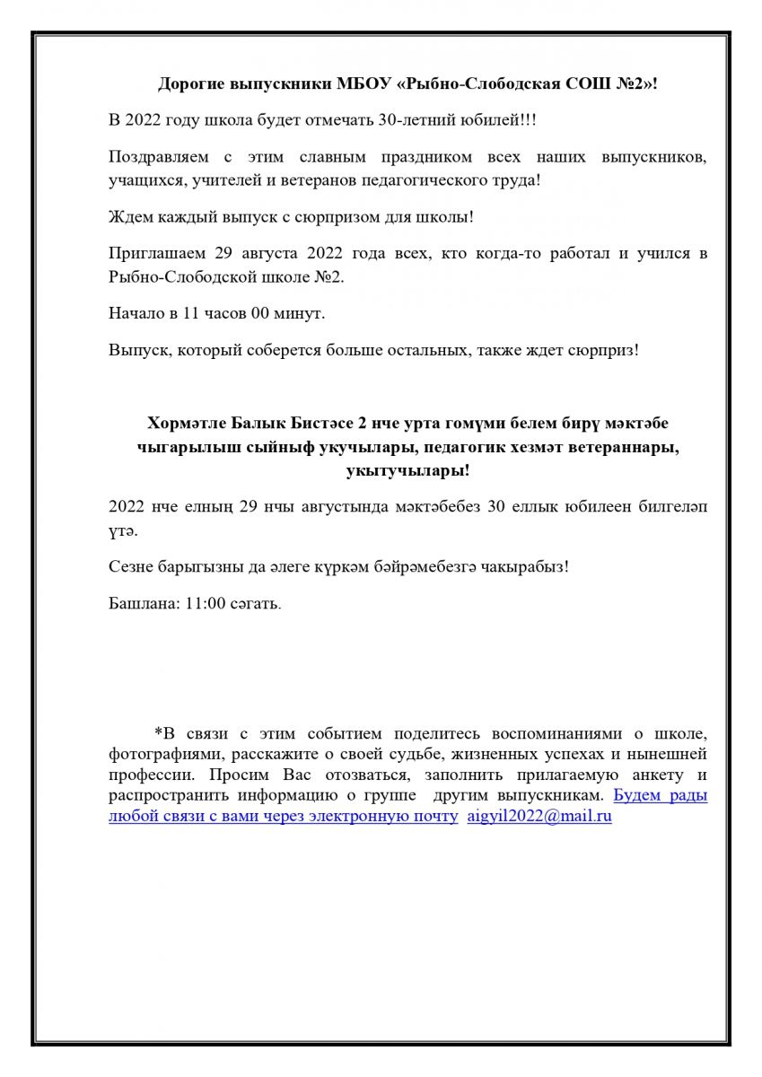 МБОУ «Рыбно-Слободская средняя общеобразовательная школа №2» Рыбно-Слободского муниципального района РТ / Татарстан Республикасы Балык Бистәсе муниципаль районы “ Балык Бистәсе 2 нче урта гомуми белем бирү мәктәбе” муниципаль бюджет гомуми белем бирү учреждениесе