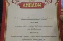Ученица 2 класса МБОУ "Шеморбашская ООШ" Задина А. стала лауреатом муниципального конкурса лэпбуков, посвященного году Л.Н.Толстого. Руководитель- Александрова Е.Н.