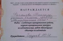 Ученица 5 класса МБОУ "Шеморбашская ООШ" Фасхиева Т.И. стала лауреатом муниципального конкурса исследовательских работ обучающихся "Мастера исследований".Руководитель- учитель географии Гордеев Ю.И.