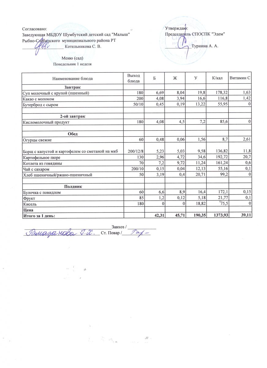 В меню представлены разнообразные блюда. Таким образом, детям обеспечено полноценное сбалансированное питание.