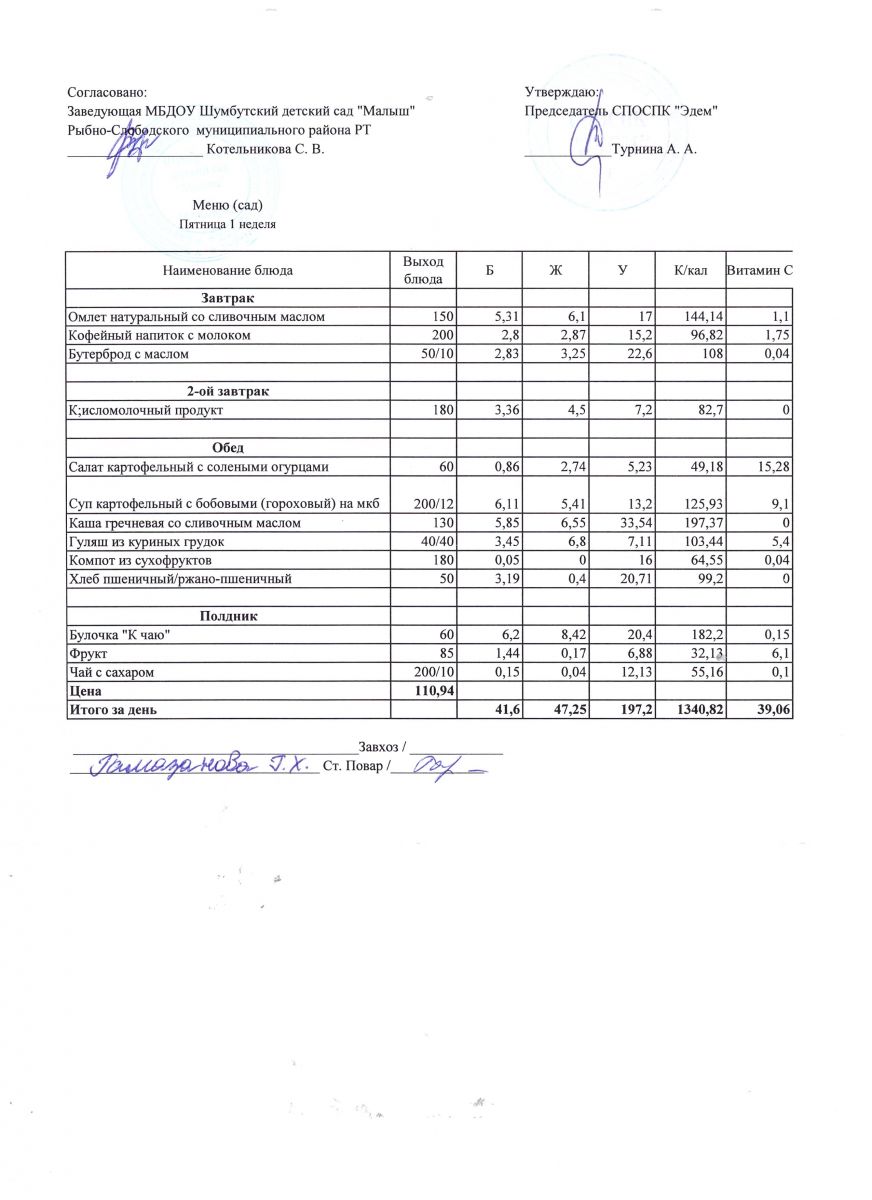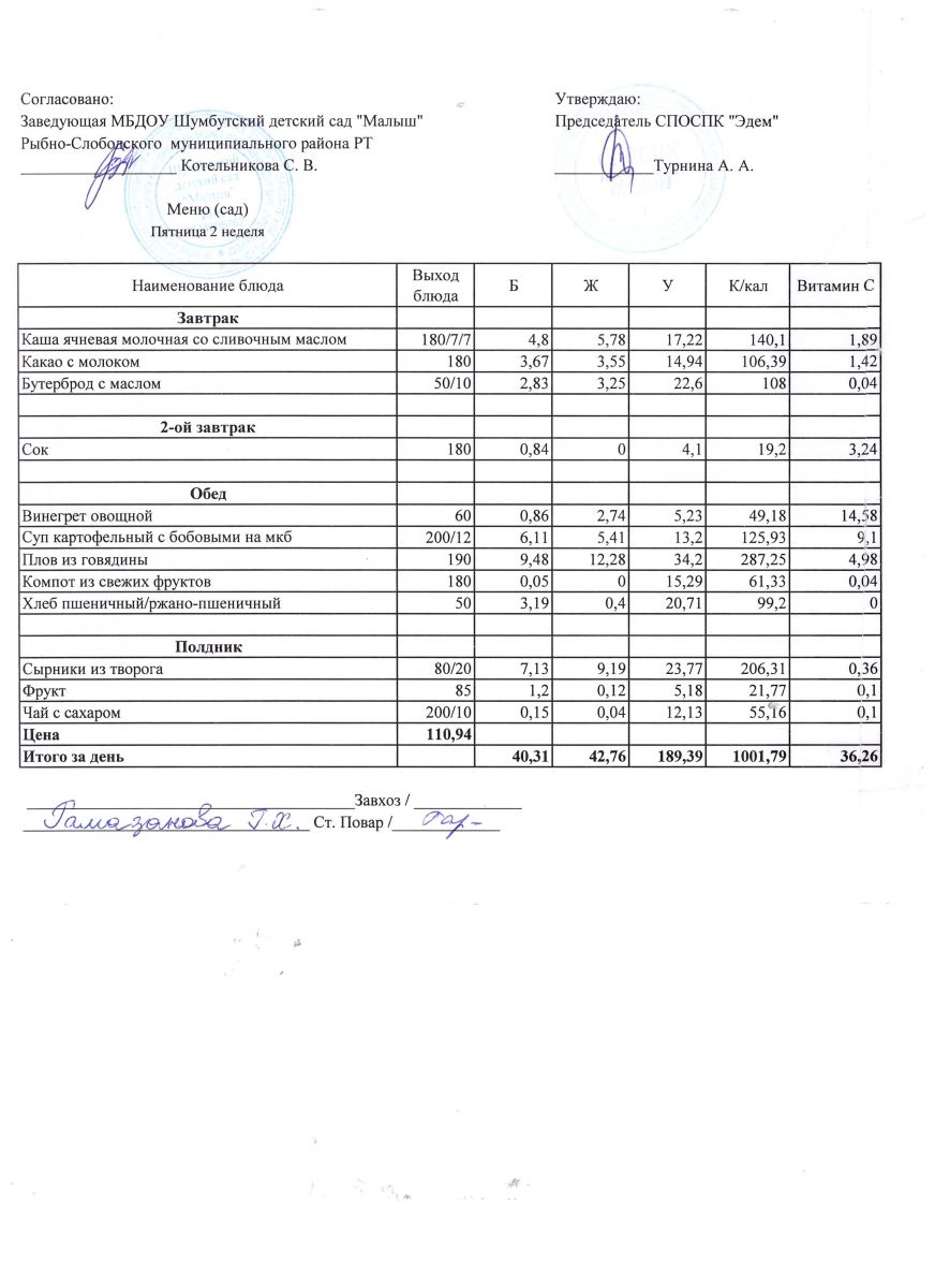 Меню на 15.04.2022г. Пятница 2 неделя