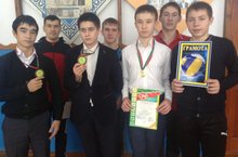 Команда нашей школы (тр.Тухватуллин Р.Х.) заняла 2 место в лично-командном турнире среди учащихся 1999 года рождения и моложе по национальной борьбе, посвященного памяти Акмалетдинова Ильгиза Хатыповича на призы директора ПО "Кама" Р.Г.Бариева, в рамках Всероссийской физкультурно-спортивного комплекса "Готов к труду и обороне", посвященный 70-летию Победы в Великой Отечественной Войне.