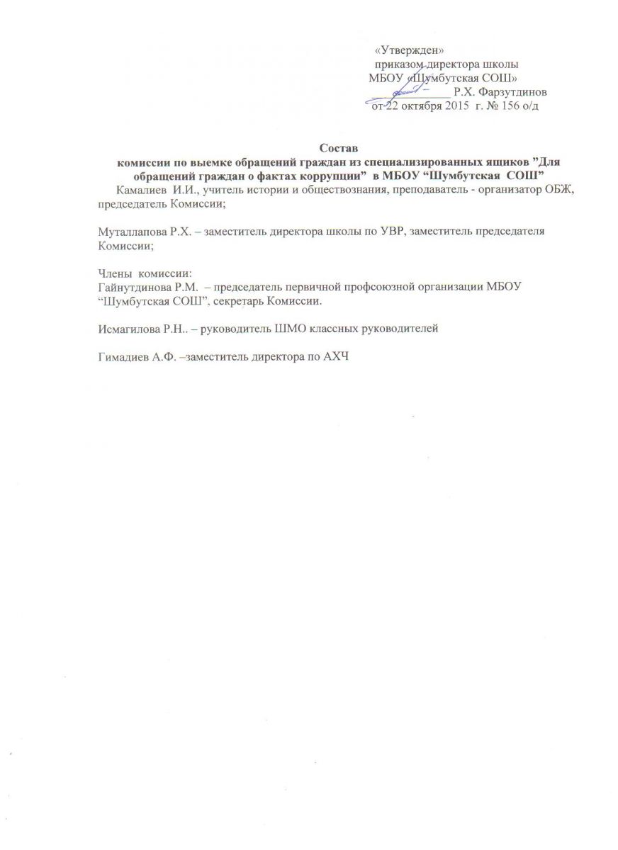 - Положение о комиссии по реализации антикоррупционной политики в МБОУ "Шумбутская СОШ"