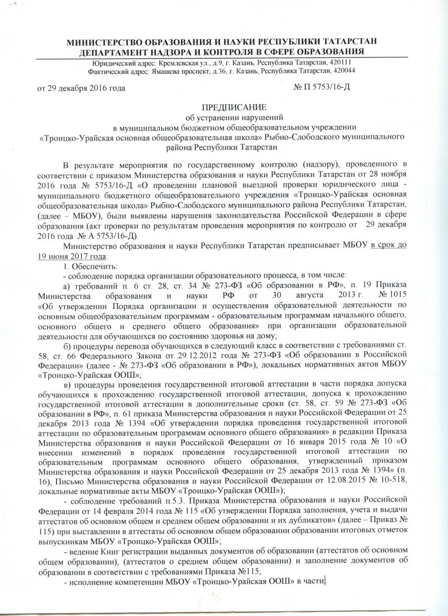 Предписание Департамента образования.(стр.1, стр.2, стр.3)