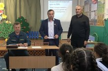В рамках месячника безопасности и всероссийского открытого урока по ОБЖ в МБОУ "Верхне- Тимерлековская СОШ" преподавателем ОБЖ М.М.Ямалиевым был проведен урок по теме "Пожары в жилых и общественных зданиях, их причины и последствия". На урок был приглашен начальник оп.с.Верхний тимерлек В.Н.Филлипов.