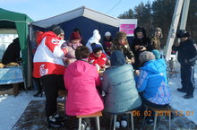 Кышкы спартакиада ярышларында катнашучыларны безнең мәктәп укытучылары кайнар чәй,коймак,өчпочмак , пироглар белән сыйладылар.
