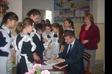 31нче октябрь көнне мәктәбебездә "Гаилә һәм мәктәп "журналының баш мөхәррире Илдар Флүс улы Миргалимов, баш мөхәррир урынбасары Хәмзә Бәдретдинов ,реклама бүлеге мөдире Надия Шайхетдинова белән очрашу булды .Алар журналның эчтәлеге,бүгенгесе ,киләчәге белән таныштырды.. Укытучылар һәм укучылар журнал турында фикерләрен әйттеләр,класс җитәкчесе,гаилә өчен файдалы материалларга тукталдылар.Кунаклар укучыларга култамгасы булган журналлар,календарьлар бүләк итте.Очрашу файдалы һәм җанлы утте.
