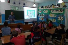 С правилами дорожного движения ознакамливает учитель ОБЖ Шарипов В.В./Юл йөрү кагыйдәләре белән укучыларны ОБЖ укытучысы Шәрипов В.В.таныштыра.