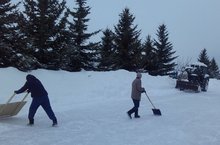 Помощь Совета отцов школе после сильного бурана\Көчле бураннан соң Әтиләр советының мәктәпкә ярдәме.