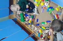 Формировать умение возводить постройку по образцу, используя дополнительные материалы по своему замыслу; развивать навык самостоятельной организации игры с постройками; воспитывать желание делиться деталями и игрушками с партнерами по игре.