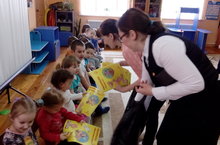 Балаларны китапханәче Миләүшә апалары Г,Тукайның китаплары белән таныштыра. 25.04.2018
