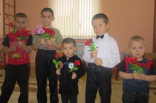 Бакчага йөрүче малайлар тәрбияче апаларын һәм кызларны бәйрәм белән котлап чәчәк бәйләме бүләк иттеләр.