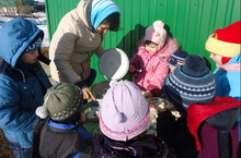 Мәктәпкә әзерлек төркеме балалары булачак укытучылары Энҗе Мәхмүтовна белән .Алар һәр атна саен шулай мәктәптә очрашалар.
