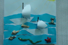 Кисеп ябыштыру элементлары белән рәсем. Балаларның күмәкләп ясаган эшләре.