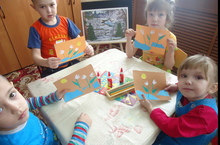 Балалар кисеп ябыштыру эшчәнлеге барышында язның беренче чәчәкләре умырзаялар ясадылар.