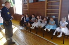 Насыйбуллин Илнур Дамирович балалар белән дә очрашты.Балалар белән юлда үзеңне дөрес тоту һәм иминлекне саклау кагыйдәләре турында аңлату эшләре алып барды.Балалардан юл кагыйдәләре буенча сорауларга җаваплар алды.