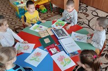 Буген рәсем шөгылендә Муса Җәлилнең "Кызыл ромашка" шигырен өйрәнеп,ромашка чәчәкләре буядык. 10.02.2021