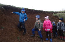 Сәяхәтебез барышында без яңгыр юган текә яр буенда булдык. Ярларның ничек итеп ишелүен һәм җир катламнарының төзелешләрен карадык.