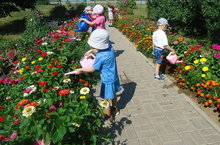 Безнең бакчабызда бик матур чәчәкләр үсә. Без бу чәчәкләрне балалар белән бергә сулар сибеп,тәрбияләп үстерәбеә.