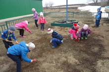 Балалар белән бергәләп бакчаны кышкы чүпләрдән чистарттык.