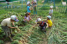 Бүген балалар белән бергәләп суган алдык. Бергә эшләүләре бигрәк тә күңелле.